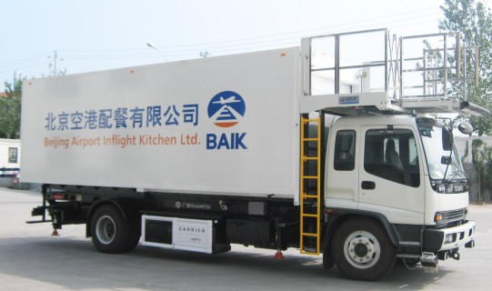 航空食品車(內燃式)是一種液壓傳動、剪式升降、平臺可前后左右移動的機場地面專用設備,主要用于為飛機提供食品裝卸服務。
